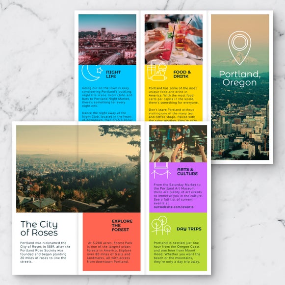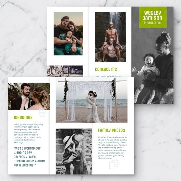 Showcase your photography work in style and learn how to make a brochure without needing any design experience. Use our drag-and-drop tools to create a portfolio brochure with your best shots, pricing info, and a standout layout.