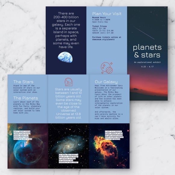 Easily create informative brochures for classrooms, open houses, or special events. Add your own photos, text boxes, and data to design engaging educational materials.