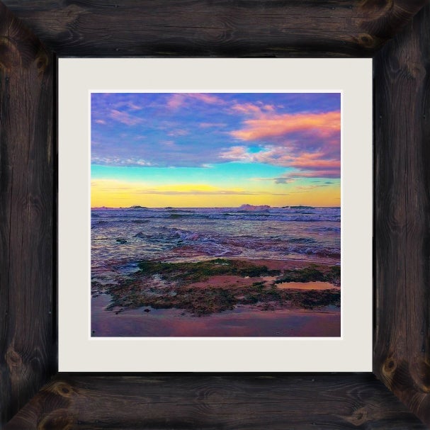 For the image above, first I took a photograph of an enticing beach scene. I then went into Artsy and lightly applied the Impressionist Filter, to add depth. Lastly, I went into Frames and added a natural wood frame, which complimented the scene and helps wash my corporate blues away.