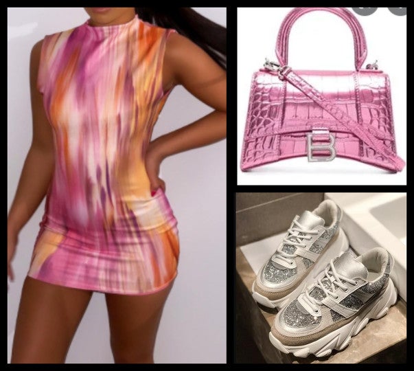 Diagram of step by step process flow with arrows connecting video, image, and text elements, in pink and blue tones.