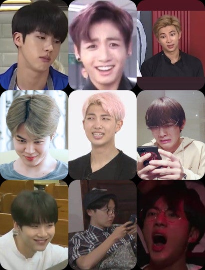 Illustration of collage maker interface showing a cursor selecting an image within a grid layout, depicted in pink and blue tones.