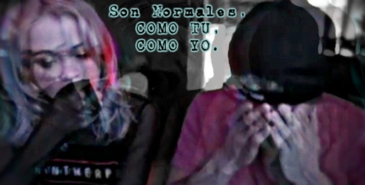 Diagram of step by step process flow with arrows connecting video, image, and text elements, in pink and blue tones.