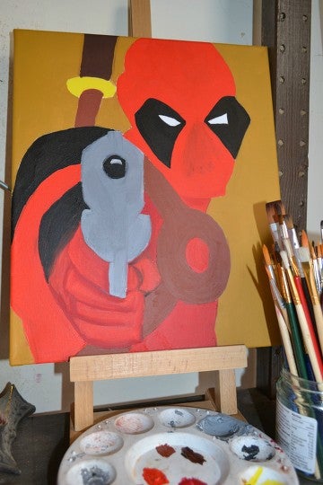 Daedpool base done just got to weait for oils to dry before i look at adding lines and maybe more shading