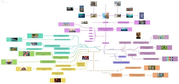 Diagram of step by step process flow with arrows connecting video, image, and text elements, in pink and blue tones.