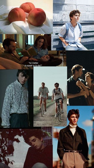 Illustration of collage maker interface showing a cursor selecting an image within a grid layout, depicted in pink and blue tones.