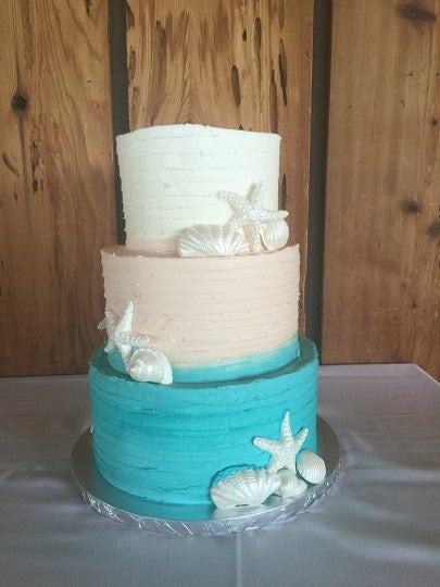 Teal beach themed wedding cake