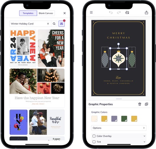 Open the Graphic Designer and pick a holiday card layout that fits your theme.