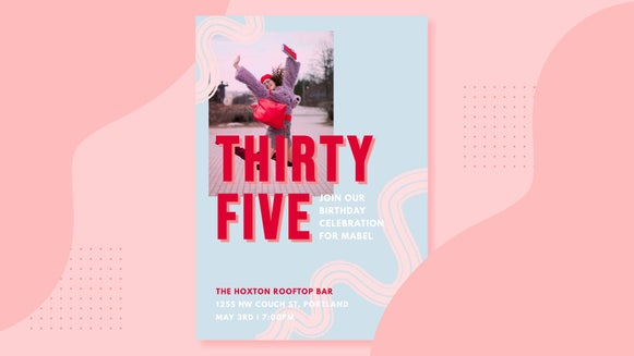 Personalice su invitación: ponga el texto a su gusto, cambie los colores del diseño y añada elementos de diseño.