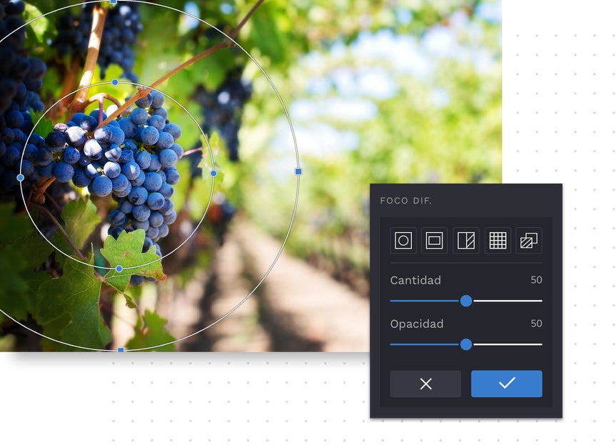 La Herramienta de Difuminación te ayudará crear imágenes con citas y gráficos para el web con mucha facilidad. Puedes quitar las líneas fuertes de tus imágenes, nublar los detalles y difuminar fotos para que tus imágenes sean aún más vivos. Puedes agregar textos, ilustraciones, o gráficos de alta calidad con el Editor de Fotos y Diseño Gráfico para satisfacer tus necesidades tanto personales, como de tu negocio.
