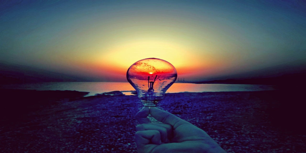 Illustration of a lightbulb surrounded by images and a heart, representing creativity and inspiration, in yellow tones.