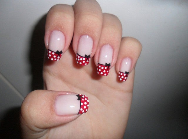 polka dot bow nails