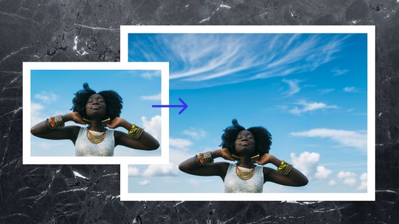 The Upscale tool upsizes your image up to 4x its original size while enhancing the finer details – all in a single click! This is a great tool for increasing the size of low-res images while improving the overall quality.