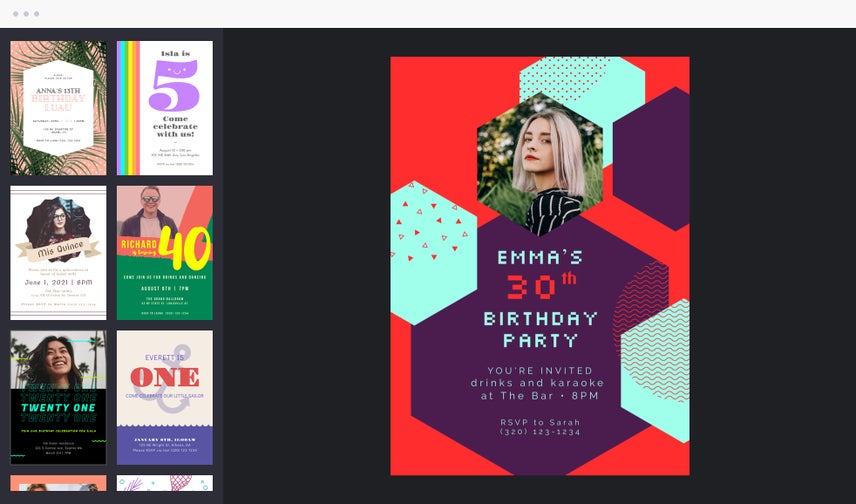 Birthdays are the ideal excuse to throw a party and bring all your loved ones together, and all the best celebrations start with the perfect invitations. With BeFunky’s Birthday Invitation Maker, it’s easier than ever to create beautifully designed birthday party invitations that set the tone and occasion and get your guests excited! Our array of professionally designed templates are the perfect starting point for customizing – just choose your favorite template, drag-and-drop a photo or two, add your party details, and you’re good to go!