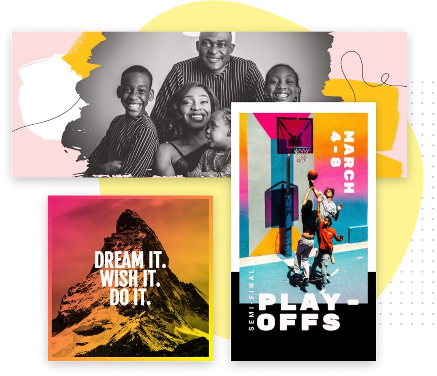 Social media is an opportunity to present yourself to the world – whether you’re growing a business or managing your own personal brand. To help make the right first impression, create polished and professional social media graphics using BeFunky's Graphic Designer. We’ll provide you with all the customizable templates you need to create eye-catching social media posts and cohesive cover photos for your channels, all in one convenient place! They’re pre-designed by professionals and customizable with drag-and-drop simplicity, so you can get the look you want without a learning curve. You’ll end up with engaging social media images in minutes, ensuring your brand always looks its best while giving you more time to get back to business.