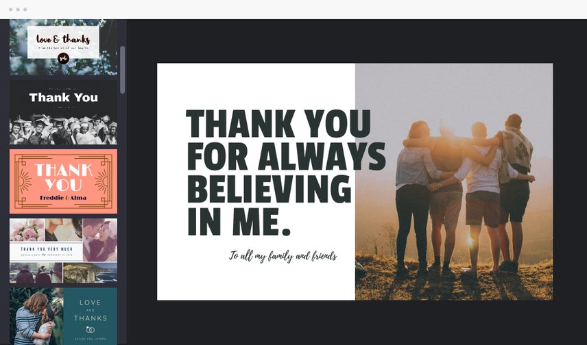 Craft a personalized thank you card in minutes by using one of our professionally designed templates.