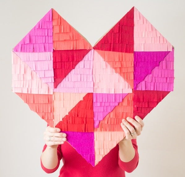 If colorful, eye-catching, and fun is what you're aiming for, then this DIY project from This Heart of Mine is perfect for you. This fringe-filled, geometric heart is just the thing to put a huge smile on its recipient's dial...trust me!