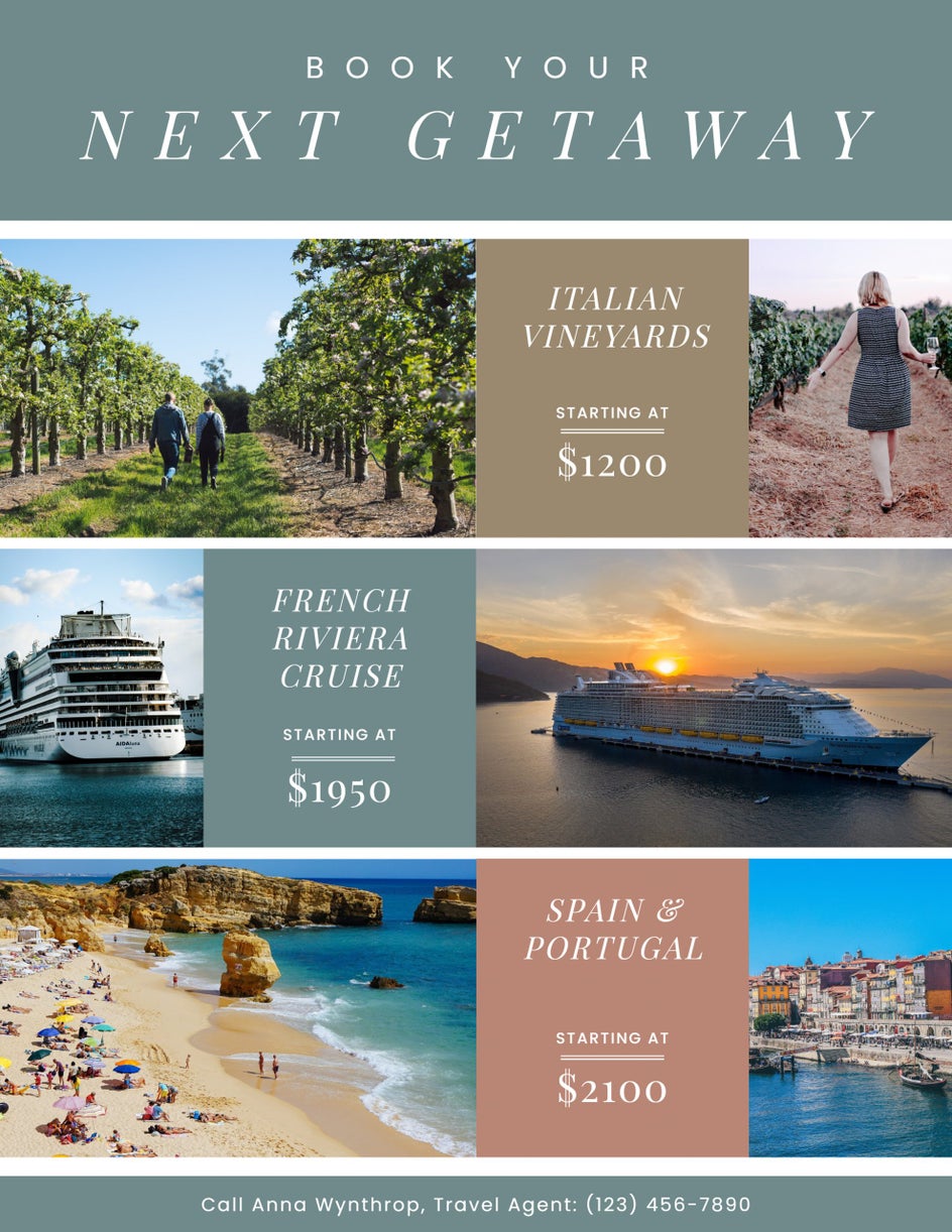 Take this example of a flyer, for instance, which allows the brand’s established colors to feature center-stage, while the trending hues subtly (yet beautifully) take their place in the background.