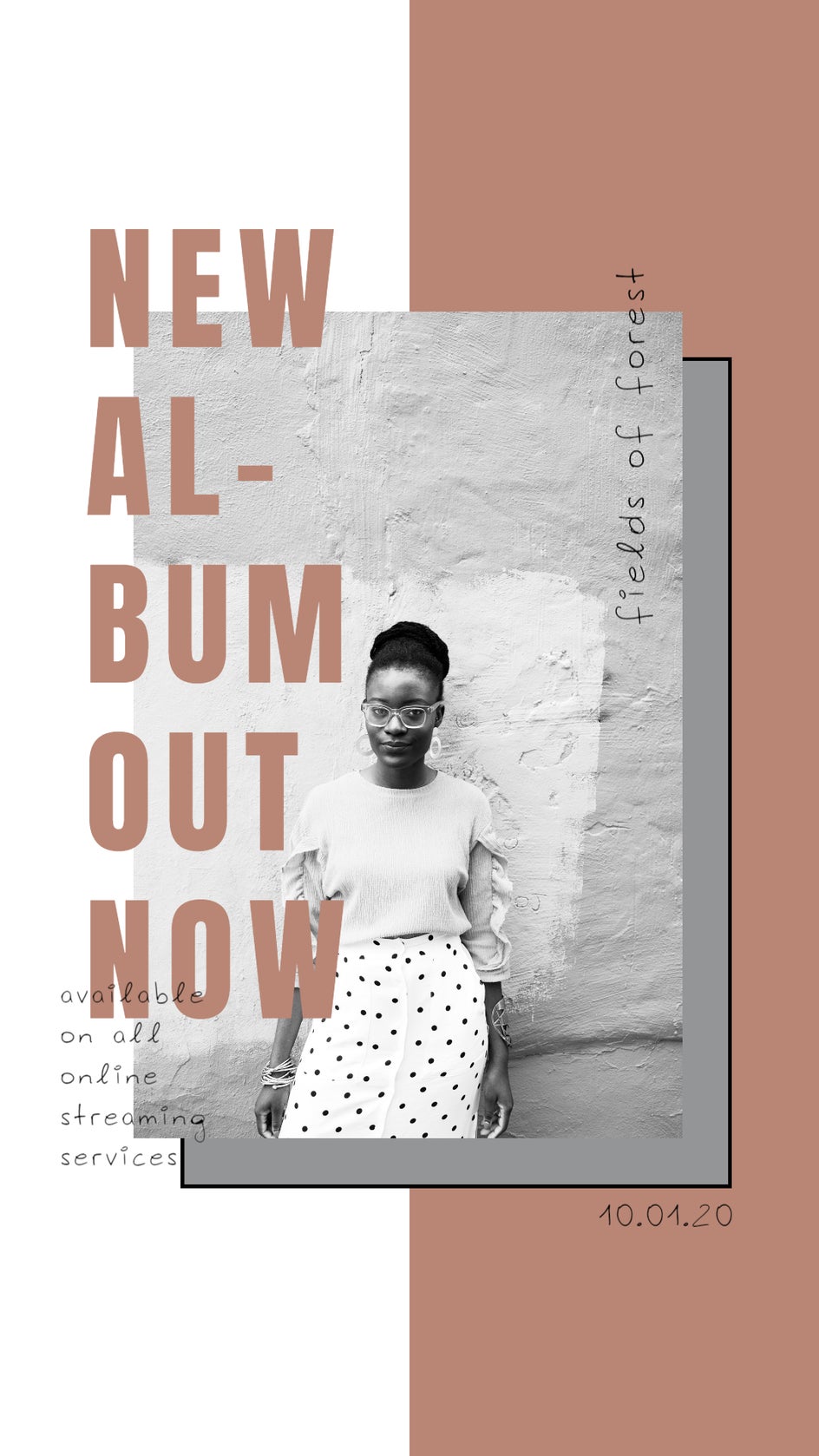 In this Instagram Story template, we’ve used the trending colors Big Cypress and Ultimate Grey for a pop of color, while keeping it mostly neutral. Using Big Cypress on both sides of the template (for the text on the left and background on the right) creates a sense of balance, while Ultimate Grey is paired behind the main image to complement its grayscale filter.