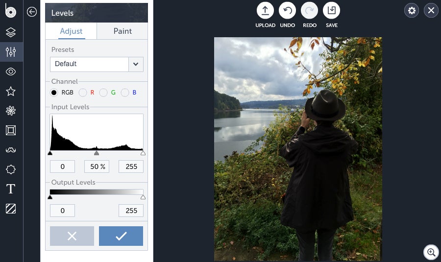 You can then plug your images into the Levels function in the Photo Editor to see just how far off you were. In this case, you can tell I managed to just hit it perfectly since a) the black and white sliders lineup and b) there’s a pretty wide tonal range, which means you’ve got yourself a perfectly contrasted photo.