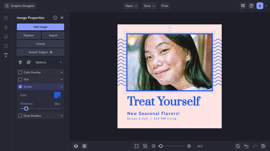 Now it's time to customize the rest of your template. Add a border to your image as we did below, change up the color scheme, and experiment with the graphics.