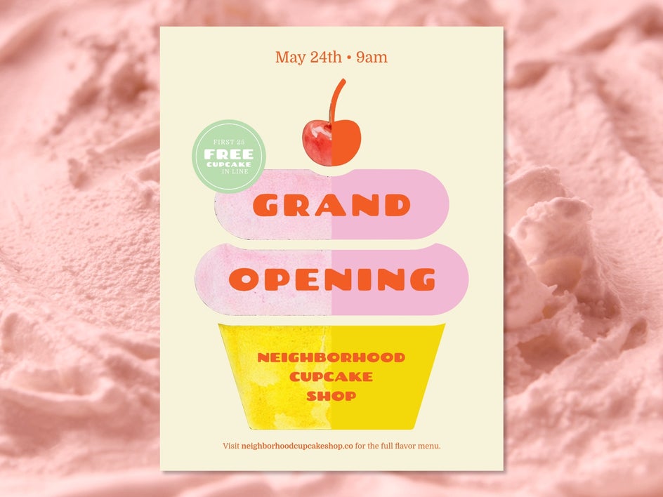 Did you know that you can turn any graphic into an image layer? This allows for even more customization options. Apply an effect to a flat graphic to make your flyers stand out. With Watercolor GFX, our cupcake graphic has more depth and texture.