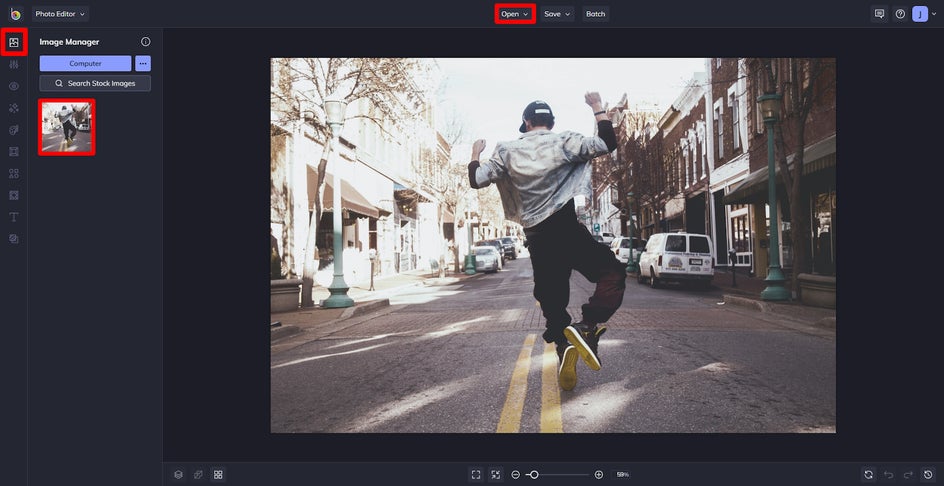 Ready to try out this awesome AI photo enhancement tool? Click this link to head straight to the AI Image Enhancer or open the Photo Editor first. Then, upload the image you wish to enhance.