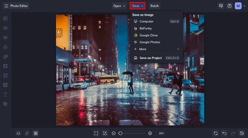 Once your low-quality image has been transformed, all that’s left to do is to save it. Click Save at the top of the screen, then select your desired save location.