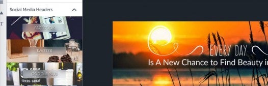 Opening up the BeFunky Designer, we can choose Templates-> Social Media Headers-> Facebook, and now we have our Facebook Cover Template perfectly sized.