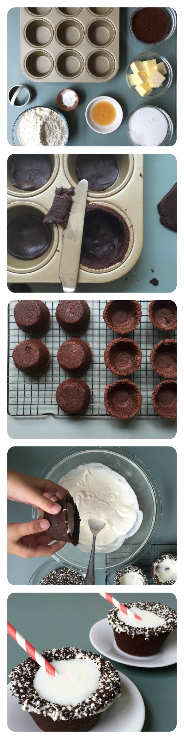 Being an avid Pinterest user, I’ve been seeing these irresistible looking “cookie shots” just about everywhere. Baked to gooey perfection and filled with milk, I knew I simply had to have them—which is exactly why I set out to make some, Oreo style. And because the entire process was so visually stunning, I’m going to use these shots along with the BeFunky Collage Maker to create a gorgeous, drool-worthy vertical recipe pin.