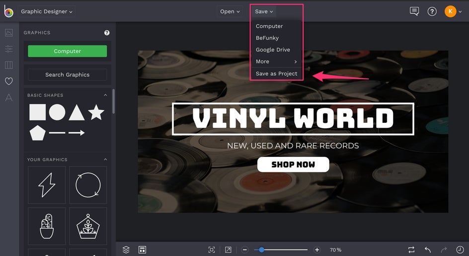 You can also choose the Save as Project option to save your ad in an editable format, just in case you want to come back to it later to make changes. I always choose this option for my designs, because I don’t want to have to design the entire thing again if there is a typo or issue. Save your projects!