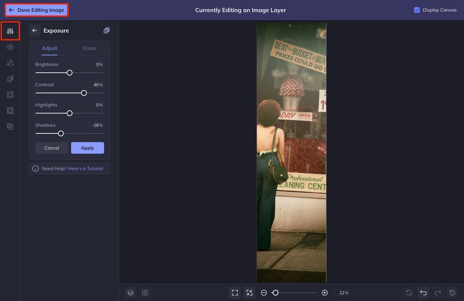 Once you’re done editing, you can select Done Editing Image to return back to your project in Graphic Designer without losing your photo edits. This is one of my favorite BeFunky features.