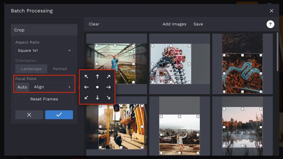 You can also move the crop targets individually for custom placement, or choose from a set focal point menu by clicking the Align options in the Crop menu. Once everything looks just the way you want it to, just click the blue checkmark. Too easy!