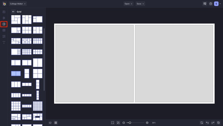 Click here to head to the Collage Maker. Then, click on the Layouts tab to find the perfect side-by-side image layout for your Before and After. If you don't see exactly what you're looking for, don't worry. Just choose whatever template is best and we'll go into layout customization in just a bit.