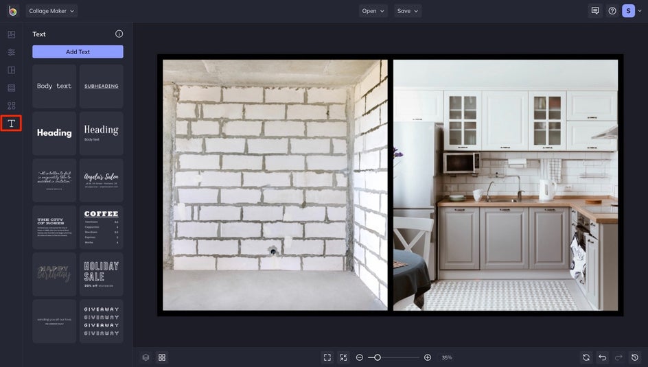 Adding "Before" and "After" labels isn't necessary, but it's recommended. Especially if you've made a very drastic change, as we did here. To add text, click on the Text tab, followed by Add Text. Or, you can choose one of the available presets.