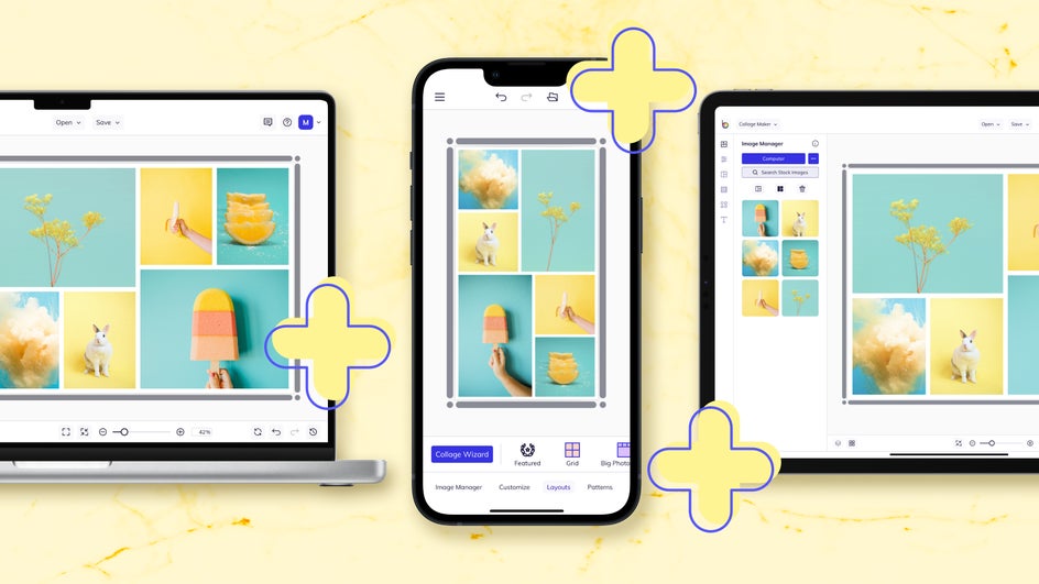 If you have a Plus subscription, you’ll find all of the Plus features you love – no matter which device you’re creating with or signed up with. Whatever influenced your decision to upgrade, whether that be our arsenal of photo editing tools, expansive library of Designer templates, or unique collage layouts, you can continue using them anywhere and everywhere.