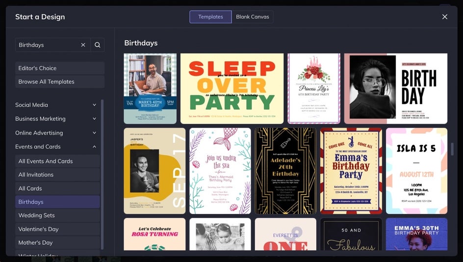 When you click this link, you’ll be directed straight to BeFunky’s Birthday Invitation templates. Browse through the template layouts until you find one you love.