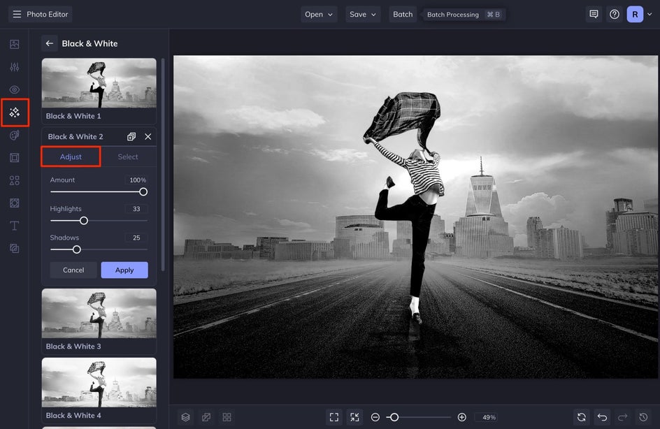 Step 1: Choose a Black & White Effect