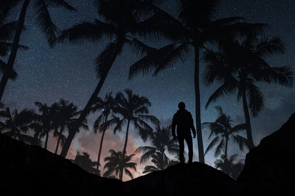 We started off with two very beautiful but very distinct images. Using the Screen Blend Mode at 75% opacity, we were able to layer these images so that they enhance each other instead of competing for the spotlight. The stars add dreaminess and texture to the original image. The lone subject offers a proper focal point for the night sky. Combining the two images results in a completely different mood than each photo can manage alone.
