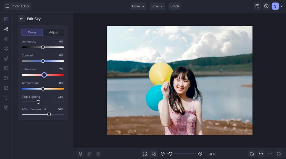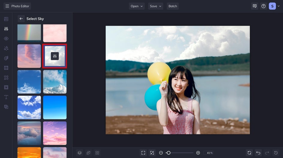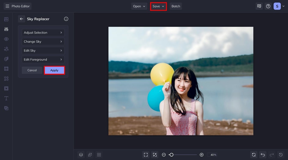 Now all that’s left is to save your image with a new sky. Click on the Save menu at the top of your canvas and choose whichever destination you prefer. That’s it!