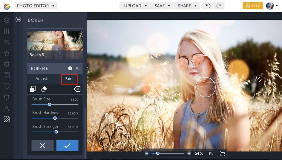 Pro Tip: Remember how we talked about bokeh naturally occurring in the blurred part of your photos? If you want to blur backgrounds first, you can start in the Edit menu and use the Blur tool to make certain areas out of focus before adding bokeh.