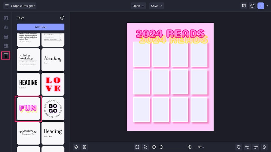 Book tracking posts are used consistently throughout Booktok, no matter your niche. Because they’re posted so frequently, it’s convenient to have a template on hand that you can fill out whenever you need. With the Graphic Designer, you can tailor your Bookstagram tracking template exactly to your needs. Not only do you decide the timeline – do you want to keep track of books for the month, for the year, for the past two weeks? – you can also choose your favorite colors, designs, fonts, and more.