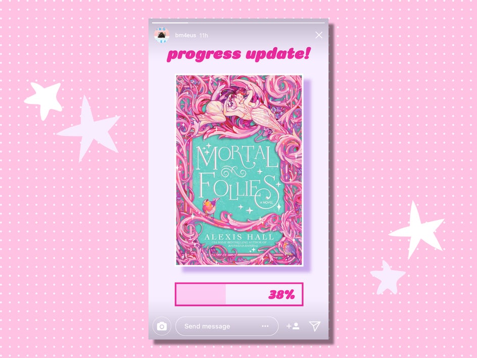 There are a few mobile apps and websites that track your reading progress, like StoryGraph and Goodreads. These apps are great for keeping tabs on your TBR, your current reads, your page count, and even your reviews. But they’re more for personal use than for use as social media, and they don’t give you the option to share your progress on Instagram.