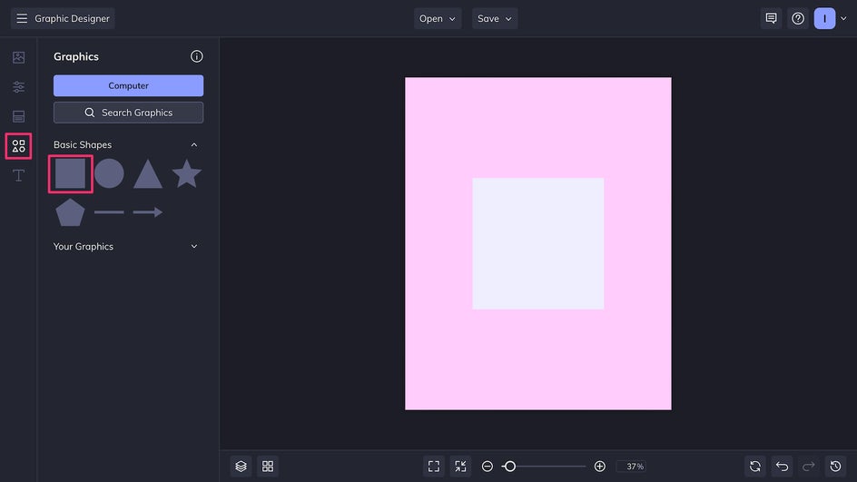 To begin, open up the Graphic Designer and create a blank canvas. The ideal size for an Instagram portrait image is 1080px x 1350px.