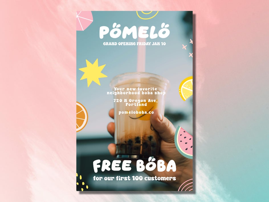 Give your audience a reason to show up! Use your Grand Opening poster background to highlight free treats, exclusive discounts, or "first 100 customers" giveaways. Use fun graphics to grab instant attention.