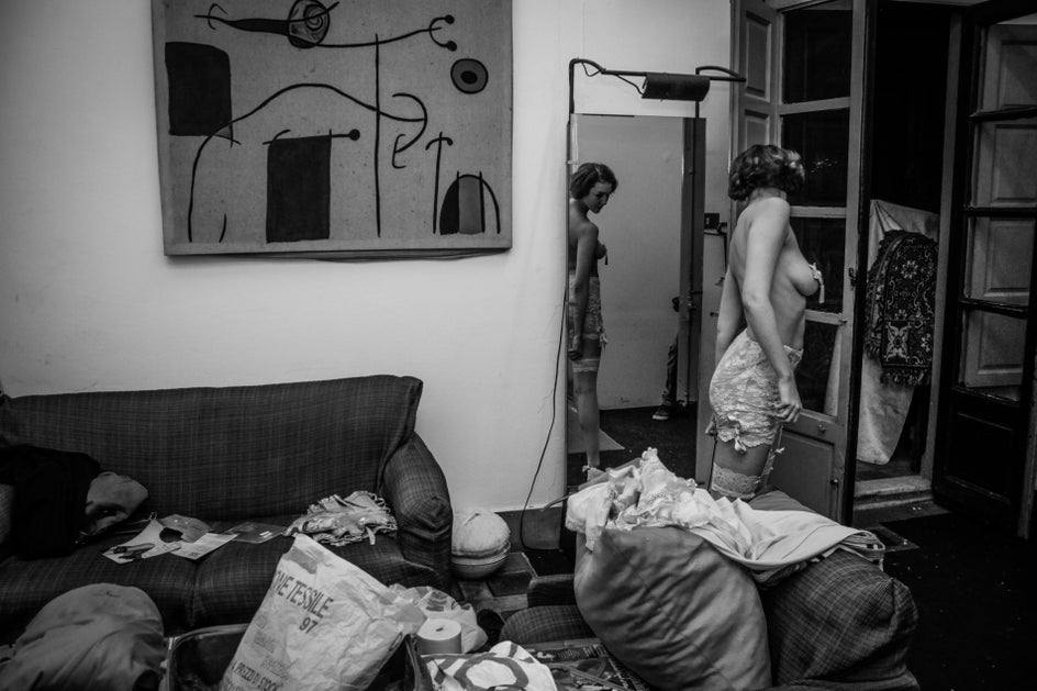 Check out these incredible behind-the-scenes shots of the burlesque cast preparing for a show: