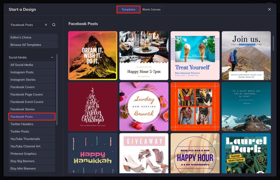 The most important thing when creating a business update post is to make sure that it stands out from the rest of the graphics being posted online. Thankfully, Befunky’s Graphic Designer has pre-made templates designed by professionals that will make the design process a breeze. It is also essential to take a peek at your competitor’s posts and make sure to share graphics that are better than theirs. A little competition goes a long way. Select the Designer when you are ready to get started.