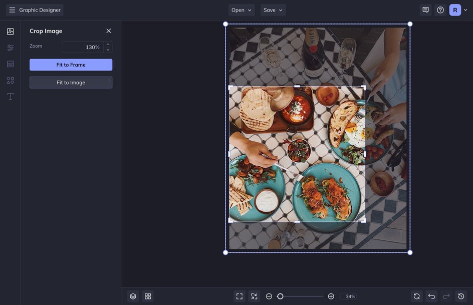 We are going to remove the color Overlay of this image and then adjust the size and Crop of our image. To adjust this, double-click the image and then drag the corners outward. You may need to zoom out to do this part.