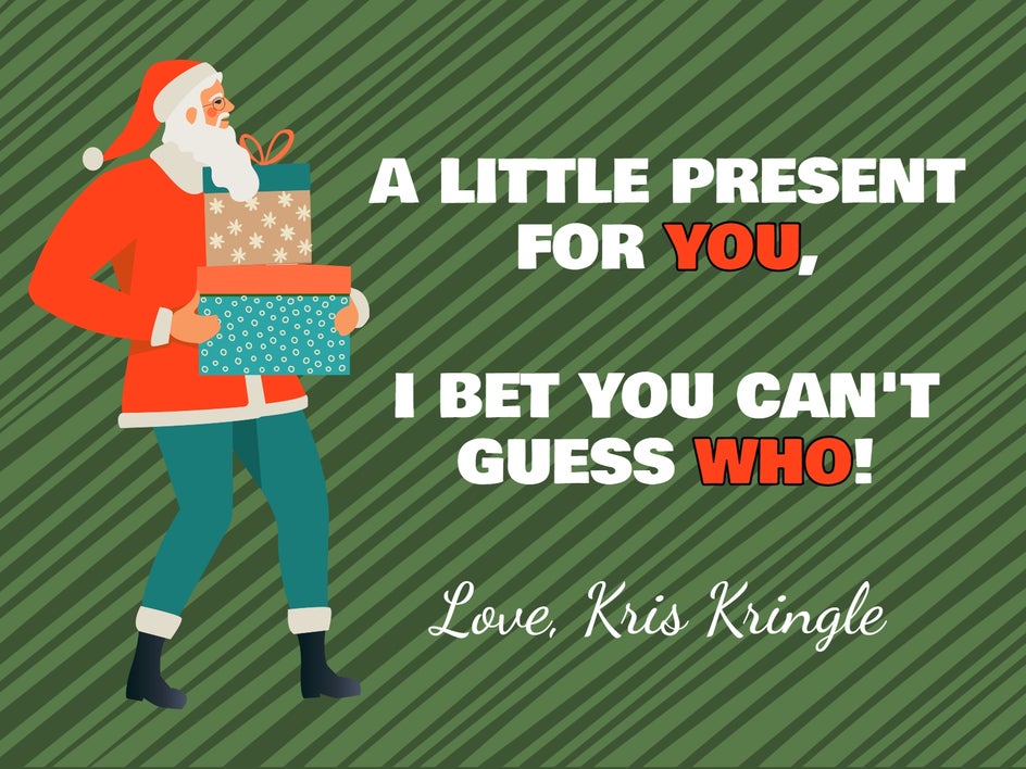 In this example below, we’ve included the phrase “A little present for you, I bet you can’t guess who! Love, Kris Kringle.”