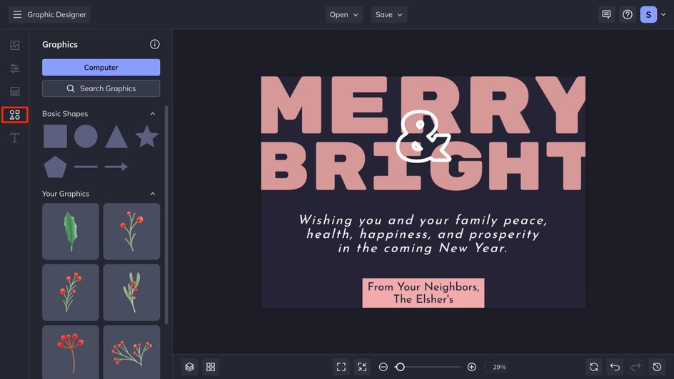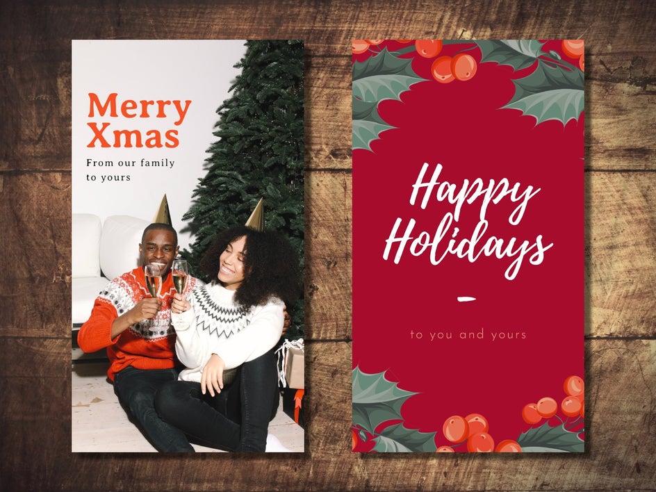There are plenty of Christmas photo collage card templates available in the Card Maker, making this process a breeze. All you have to do is drag and drop your own photos onto the template’s existing photos, then swap out the messaging for something more personal.