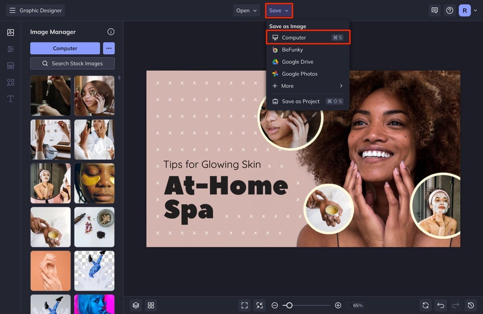 When you are all finished, make sure to save your design! To do this, select Save at the top of your screen and then select Computer.